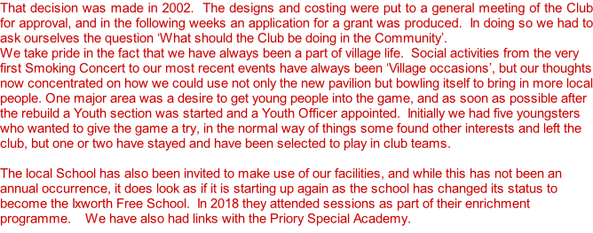 Mums, dads and children of any age, are invited to come along on a Wednesday evening at 6.30pm and/or Sunday afternoon at 2.00pm, plus there are coaching sessions on Saturday mornings subject to need. All sessions are free, and we have bowls to suit all ages and there is no need to wear special shoes, trainers are fine. We will show you the basics and if you want to take it further coaching is available on request.