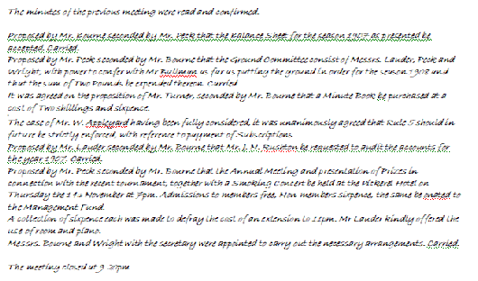 Extract from the first Committee meeting recorded in the original Minute Book 1907