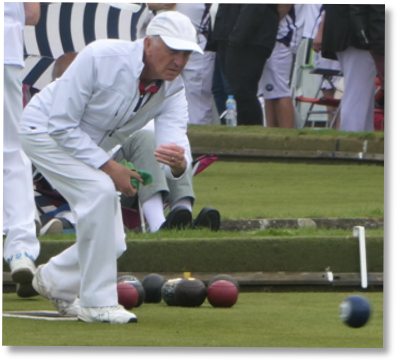 Left. Paul bowling for Suffolk in the Newton Final and above the head develops.